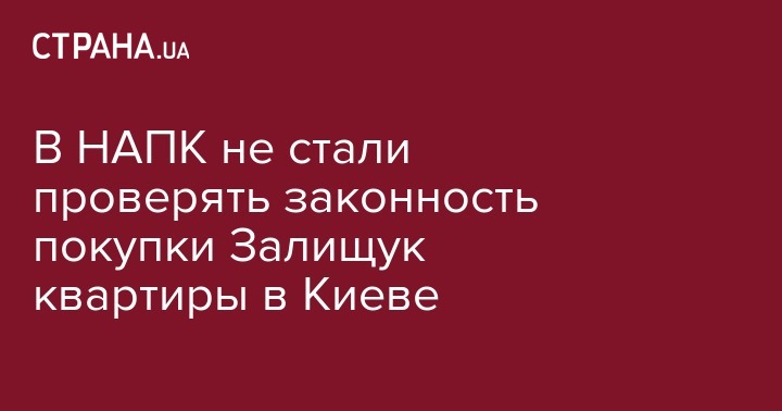"Информируем, что Национальным агентством не проводится проверка относительно соблюдения законодательства при покупке квартиры в Киеве депутатом Украины Светланой Залищук", - указано в ответе НАПК журналистам.