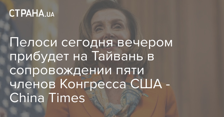 Пелоси сегодня вечером прибудет на Тайвань в сопровождении пяти членов Конгресса США - China Times