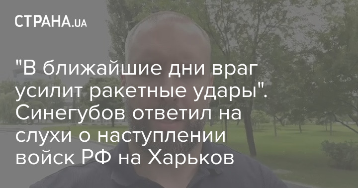 "В ближайшие дни враг усилит ракетные удары". Синегубов ответил на слухи о наступлении войск РФ на Харьков