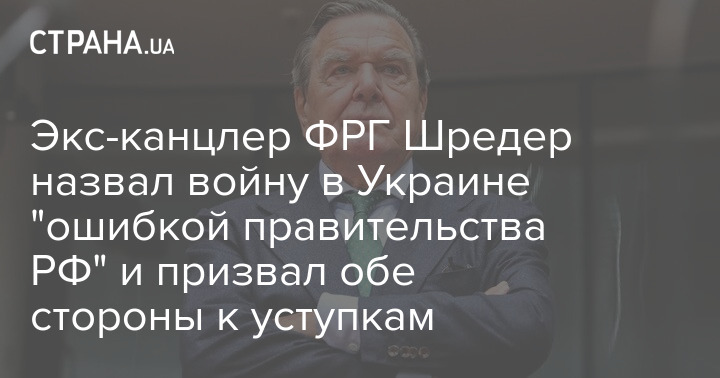 Экс-канцлер ФРГ Шредер назвал войну в Украине "ошибкой правительства РФ" и призвал обе стороны к уступкам