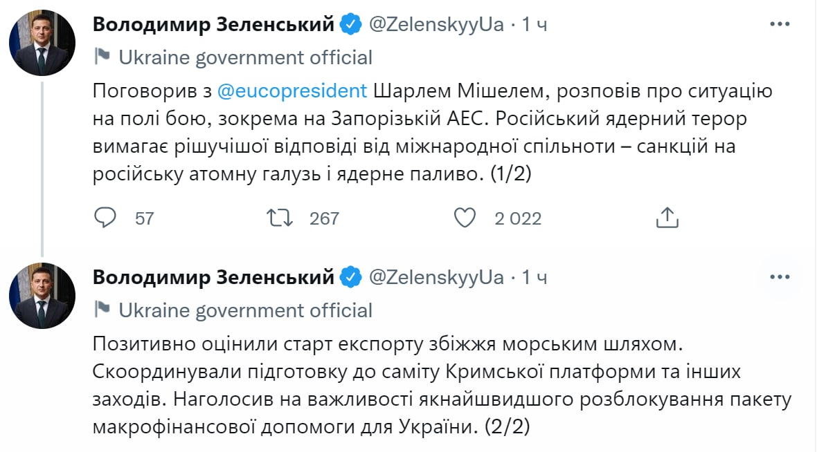 15:40 Зеленский провел телефонный разговор с председателем Европейского Совета Шарлем Мишелем.