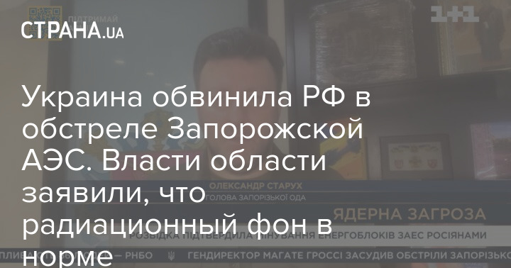 Украина обвинила РФ в обстреле Запорожской АЭС. Власти области заявили, что радиационный фон в норме