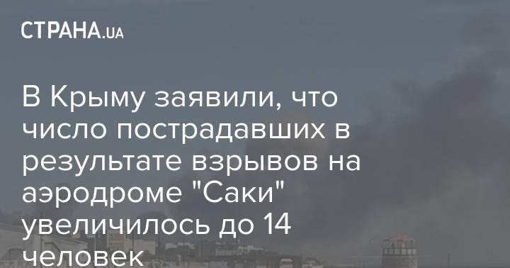 Число пострадавших при взрывах на аэродроме в Крыму 9 августа увеличилось до 14 (ранее сообщалось о девяти пострадавших). Повреждены более 60 многоквартирных домов.