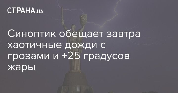 В Киеве завтра, 12 августа, также местами дождь, гроза. Столбики термометров в течение дня будут колебаться около +25 градусов.