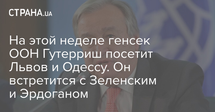 На этой неделе генсек ООН Гутерриш посетит Львов и Одессу. Он встретится с Зеленским и Эрдоганом