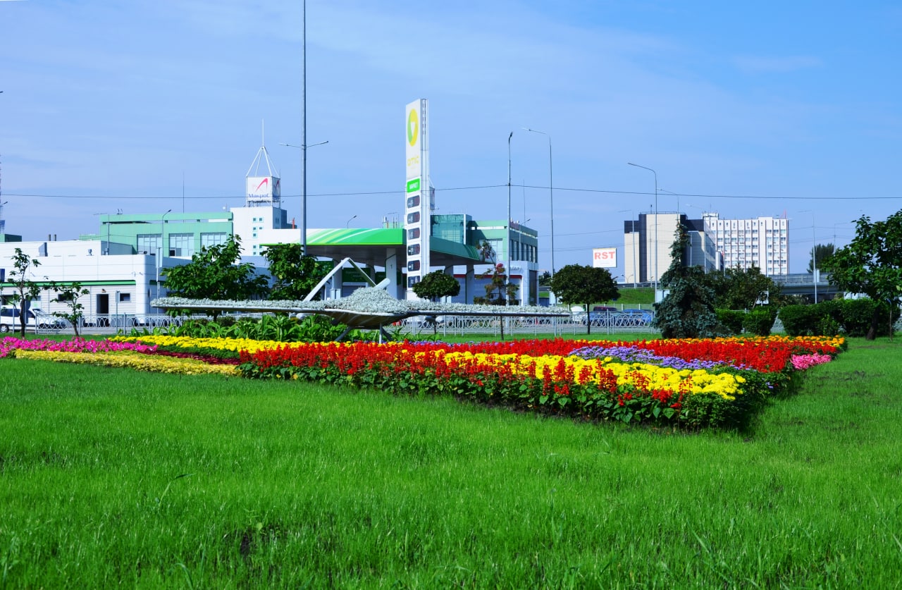 Цветочная композиция площадью 265 кв. м расположена в Оболонском районе на развязке проспекта Степана Бандеры и улицы Богатырской.