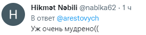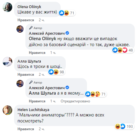 "Интересная у вас жизнь", "Что-то я немного в шоке", "Мальчики аниматоры? А можно всех посмотреть?", "Хотел устроиться на работу к Арестовичу. Передумал", "Что это?", "Уж очень мудрено", "Блен, что за порно-кринж", "иногда вам лучше помолчать", - раскритиковали его подписчики.