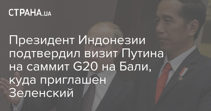 Президент Индонезии подтвердил визит Путина на саммит G20 на Бали, куда приглашен Зеленский