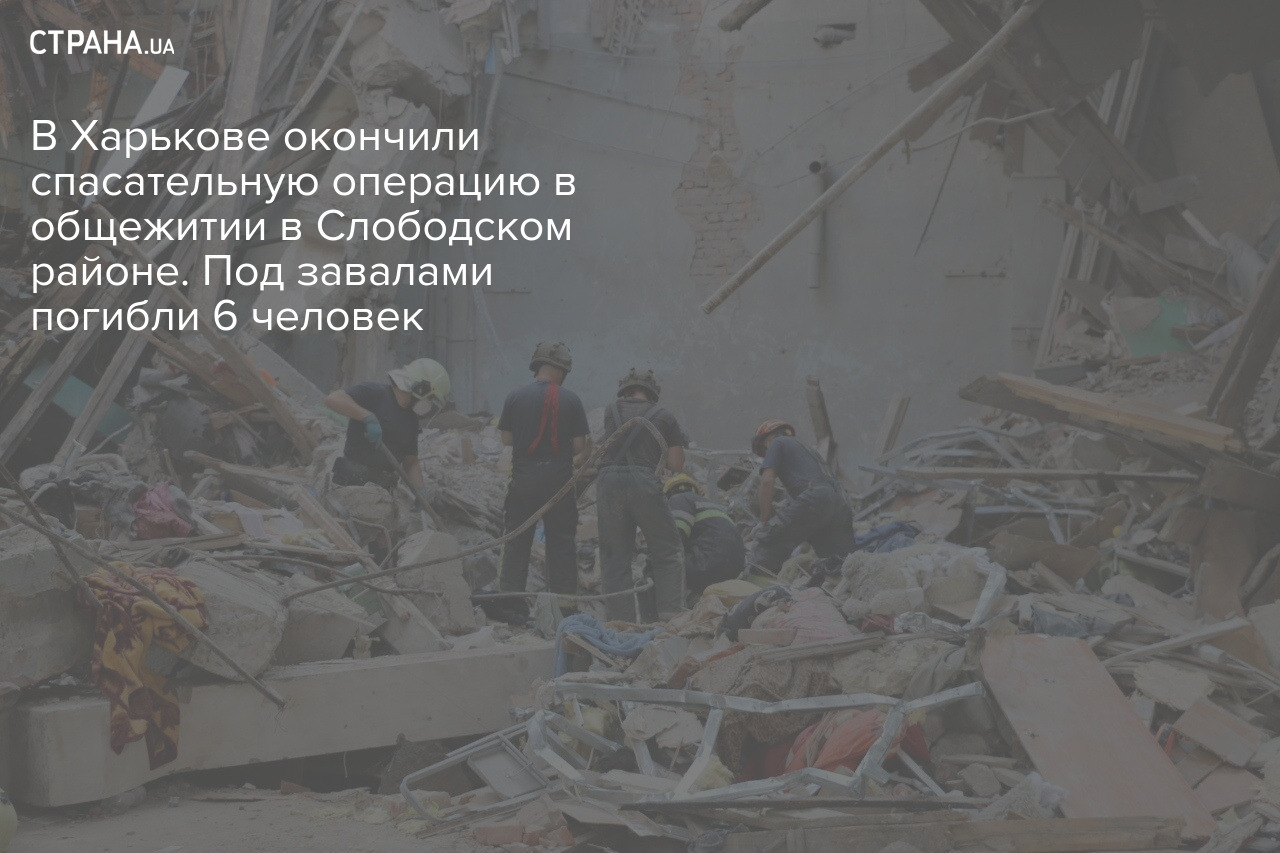 Спасательная операция в здании общежития в Слободском районе Харькова завершилась. Под завалами погибли шесть человек.