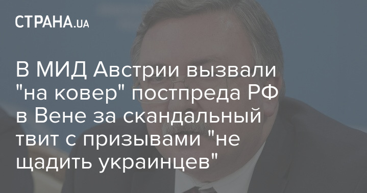 В МИД Австрии вызвали "на ковер" постпреда РФ в Вене за скандальный твит с призывами "не щадить украинцев"