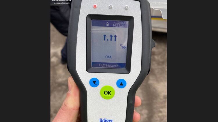 "Во время работы в Тульчинском районе патрульные отдела безопасности дорожного движения (БДД) остановили автомобиль ВАЗ 2107. За рулем был 33-летний мужчина. Инспекторы заметили у него признаки алкогольного опьянения: запах алкоголя из полости рта, нарушение координации движений. Водителю предложили пройти проверку на спецприборе Drager. Стрелки алкотестера показали вверх, а это значит, что в организме мужчины было более 5 промилле алкоголя", - говорится в сообщении.