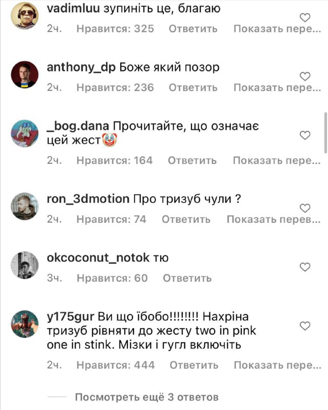 В комментариях украинцы массово призвали "удалить пост и не позориться", потому что этот жест существует уже давно и имеет вполне определённое сексуальное значение. Его называют "Шокер" или "Two in the pink, one in the stink" и описывает он процесс пенетрации пальцами.