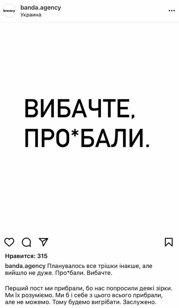 При этом изначальный пост про новый символ Дня Независимости в Banda Agency удалили.