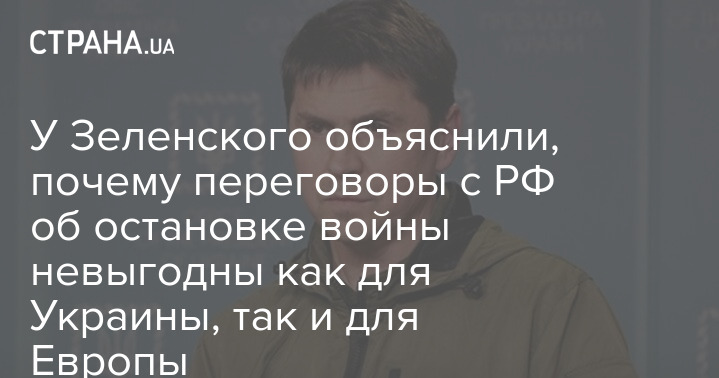 Переговоры с Россией об остановке войны невыгодны как для Украины, так и для Европы, заявил советник главы Офиса президента Михаил Подоляк.