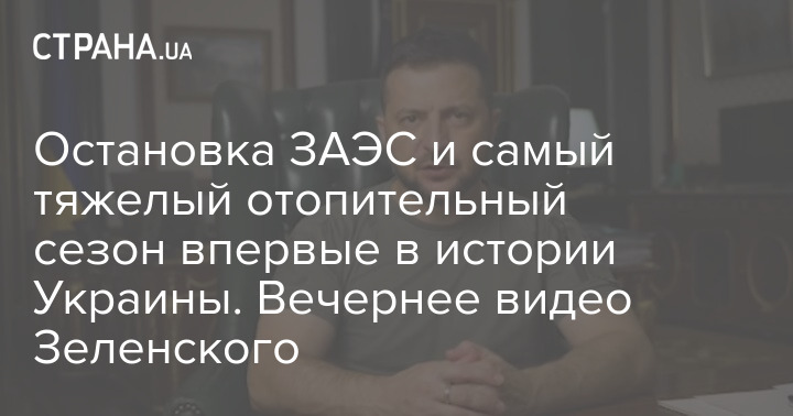 Зеленский рассказал об остановке работы ЗАЭС и о будущей трудной зиме в видеообращении. Фото: скриншот из видео