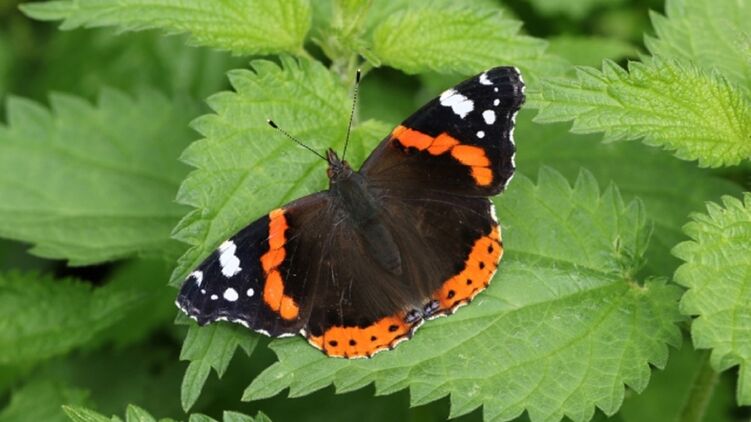 Бабочка Адмирал на листве. Фото: Shutterstock.com/ Sandra Standbridge
