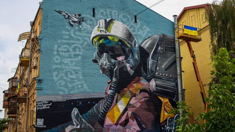 В столице Украины открыли мурал, посвященный "Призраку Киева". Фото