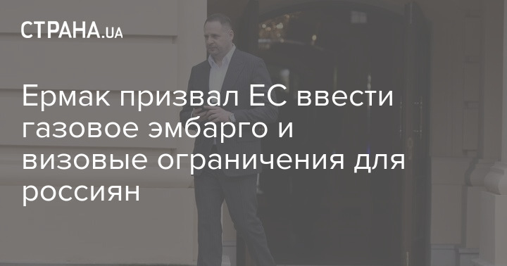 Глава Офиса президента Украины Андрей Ермак призвал Евросоюз ввести визовые ограничения для россиян и газовое эмбарго.