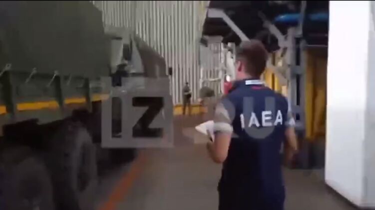 Появилось несколько видео с Запорожской АЭС, где сегодня побывала делегация МАГАТЭ. На кадрах видно, что в помещении станции стоят военные грузовики россиян с пометкой Z.