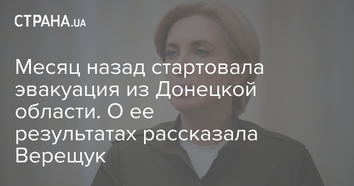 Вице-премьер Ирина Верещук в комментарии "Стране" сообщила, что всего за месяц из Донецкой области удалось эвакуировать 15711 человек.