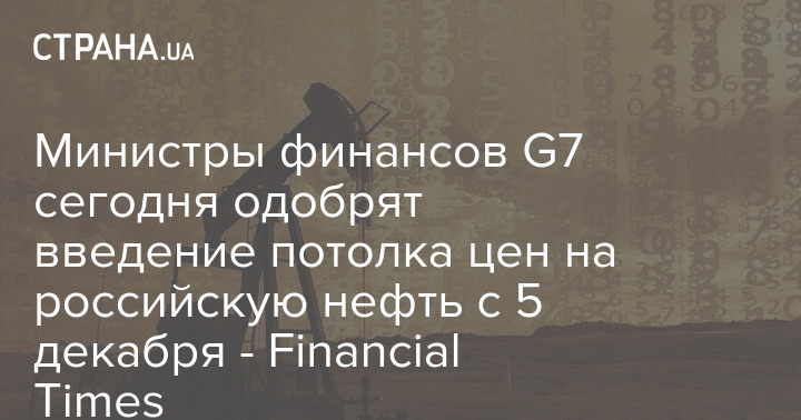 Министры финансов G7 сегодня одобрят введение потолка цен на российскую нефть с 5 декабря - Financial Times