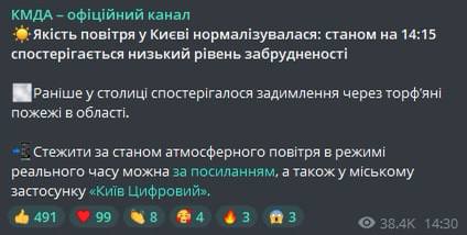 Отметим, что столица страдает от запаха гари и задымления с начала сентября. По состоянию на 4 сентября ликвидация возгораний вблизи сел Сосновка и Лесное Вышгородского района продолжалась.