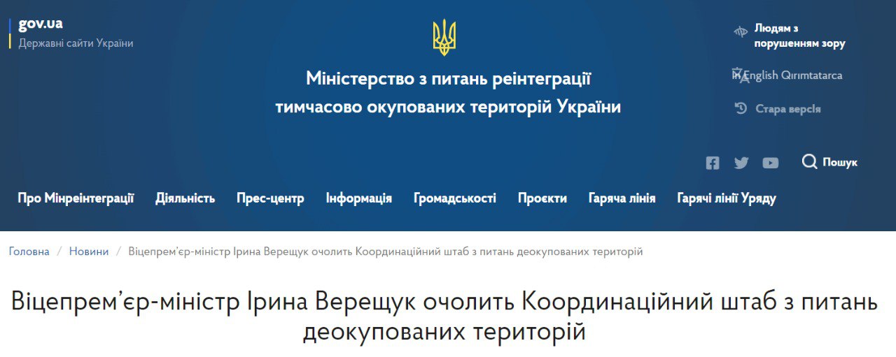По ее словам, сейчас в штабе нарабатывают положения для организации работы, так как появляются новые деоккупированные территории.