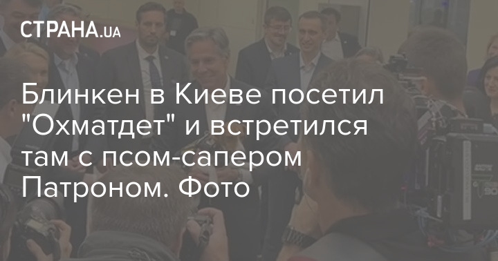 Блинкен в Киеве посетил "Охматдет" и встретился там с псом-сапером Патроном. Фото