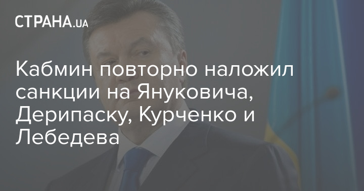 Правительство Украины повторно наложило санкции на экс-президента Виктора Януковича, украинского олигарха Сергея Курченко, бывшего министра обороны Украины Павла Лебедева и российского миллиардера Олега Дерипаску в части блокирования их активов и активов, к которым они могут быть причастны.