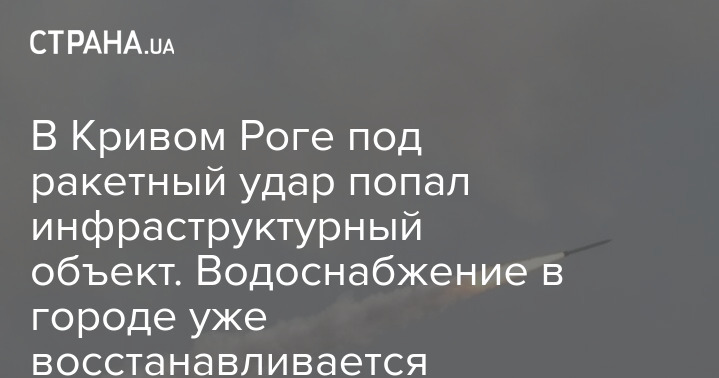 Глава военной администрации Кривого Рога Александр Вилкул подтвердил удар по инфраструктурному объекту города и заявил, что водоснабжение в Кривом Роге уже восстанавливается.
