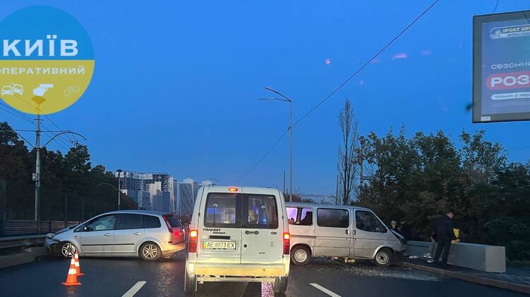 Водитель вышел починить микроавтобус в Киеве и в него влетел "Форд". Фото