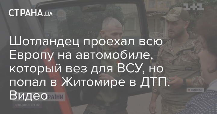 Канал ТСН сообщает, что шотландец одолел тысячи километров дорог, десяток остановок и проверок и скитаний рядом с белорусской границей и, в итоге, попал в ДТП в Житомире