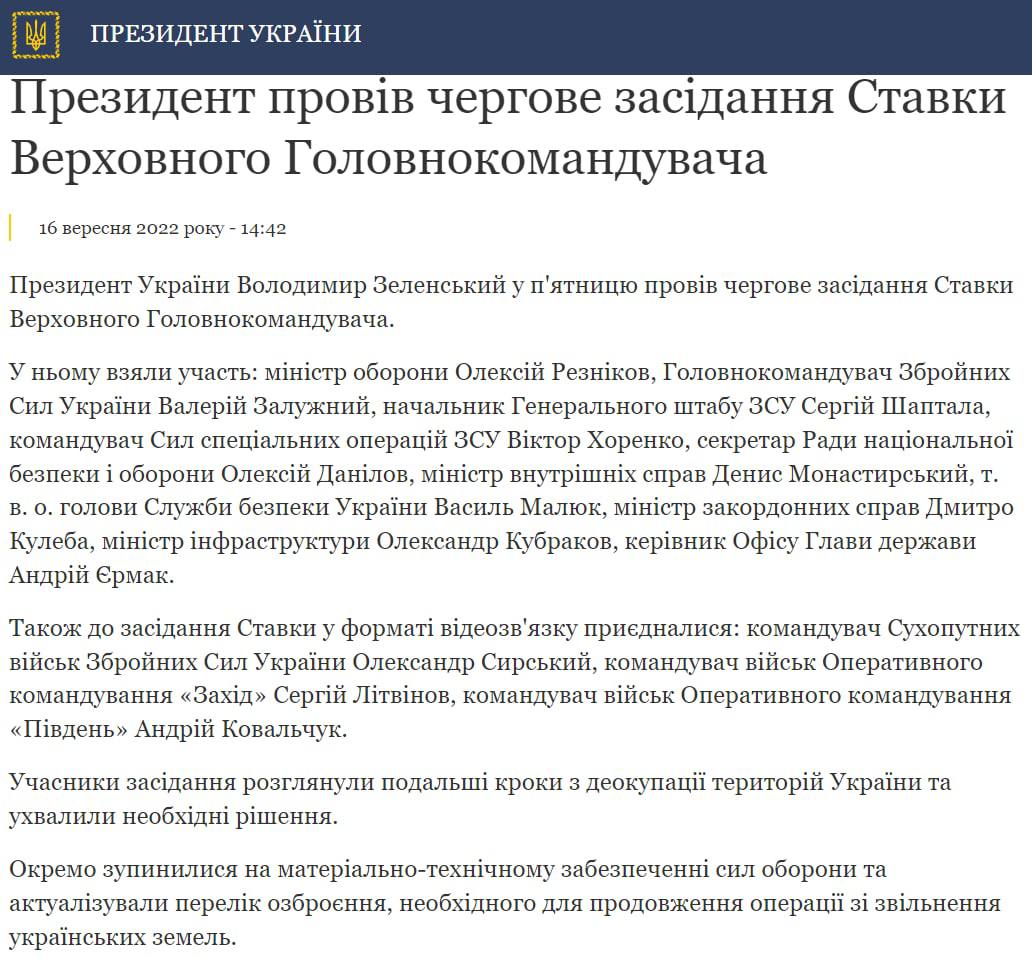 1. Сообщил, что в Харьковской области ведутся следственные действия по военным преступлениям россиян в Харьковской области. Одобрил решение ООН отправить миссию в Изюм, где нашли массовые захоронения. «Россия повторила в Изюме то, что сделала в Буче», - заявил Зеленский.