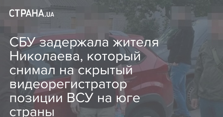 Служба безопасности Украины сообщает о задержании в Николаеве мужчины, который снимал на скрытый видеорегистратор позиции ВСУ на юге страны.