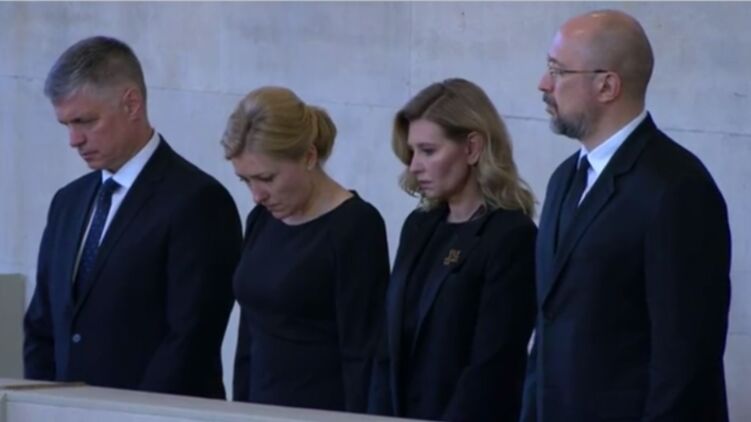 Премьер-министр Денис Шмыгаль и первая леди Украины Елена Зеленская почтили память королевы Елизаветы II, тело которой покоится в Вестминстерском дворце.