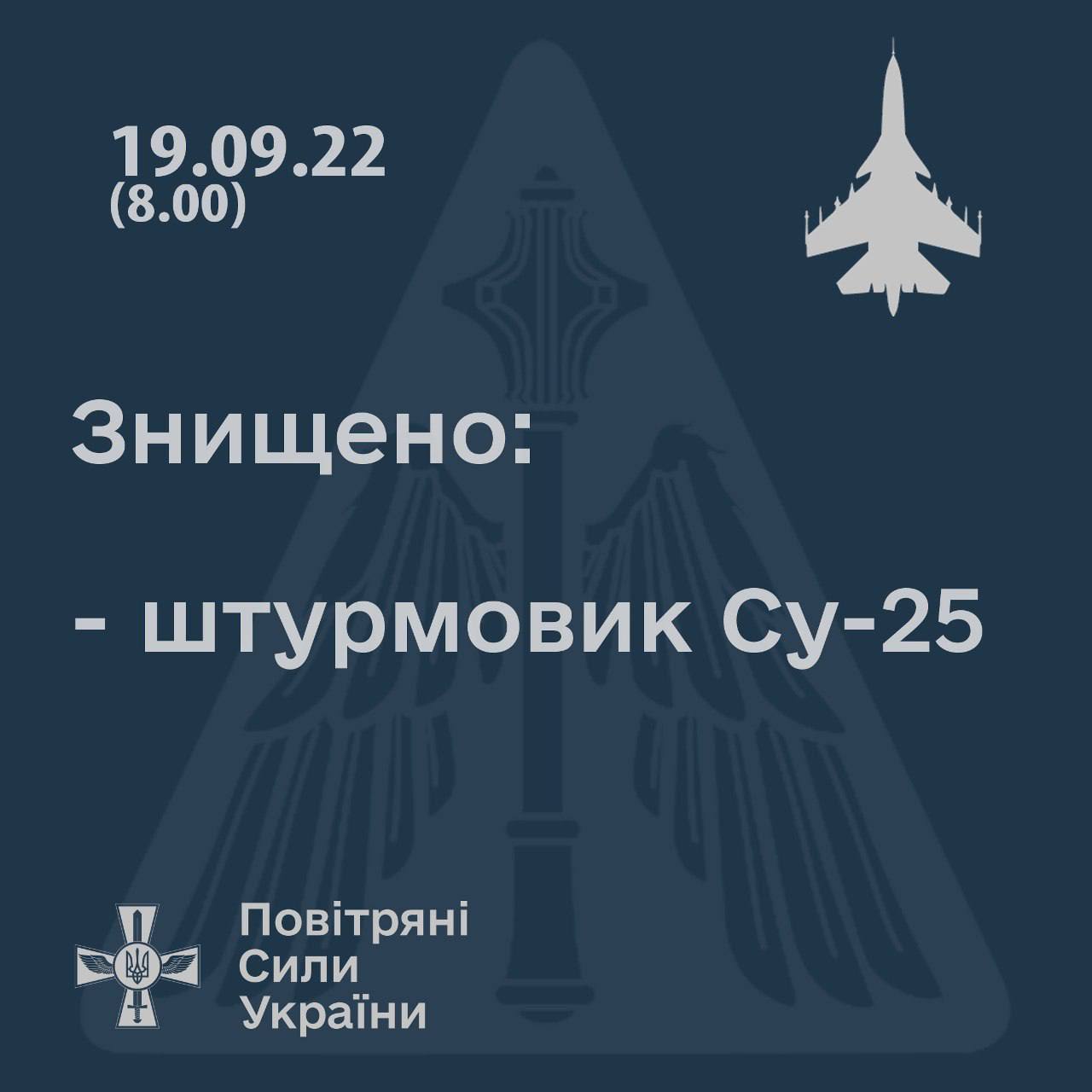 Украинские военные утром в понедельник, 19 сентября, сбили в Херсонской области российский штурмовик Су-25.