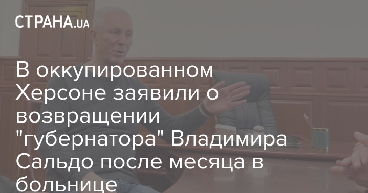 Назначенный россиянами "глава администрации" Херсонской области Владимир Сальдо находится на своём рабочем месте и вернулся к исполнению обязанностей.