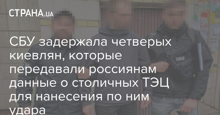 В Киеве задержали четырех местных жителей, которые подозревают в передаче россиянам данных о столичных ТЭЦ для срыва отопительного сезона.