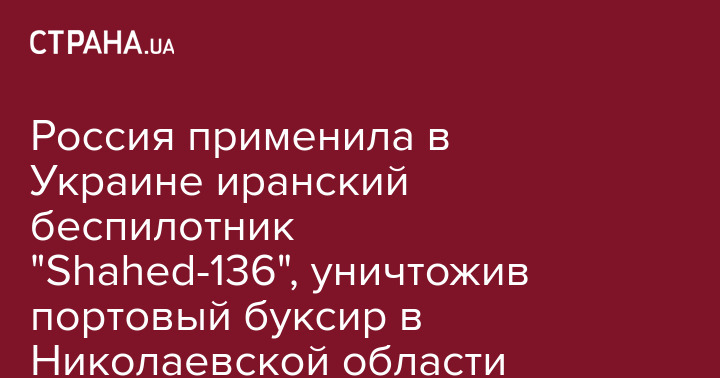 Россия применила в Украине иранский беспилотник "Shahed-136", уничтожив портовый буксир в Николаевской области