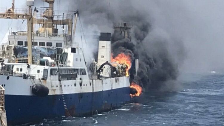 В Очакове после обстрела иранским дроном загорелся портовый буксир. Фото: Telegram