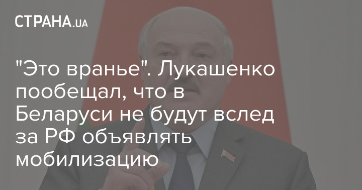 Президент Беларуси Александр Лукашенко пообещал, что в Беларуси не будет мобилизации, которая сейчас объявлена в России.