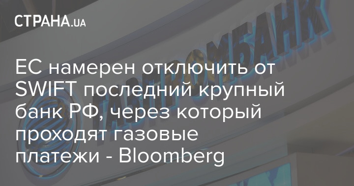ЕС намерен отключить от SWIFT последний крупный банк РФ, через который проходят газовые платежи - Bloomberg