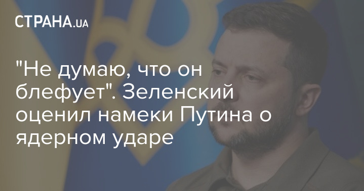 Президент Украины Владимир Зеленский не считает, что Владимир Путин "блефует", когда намекает на применение ядерного оружия после "референдумов".