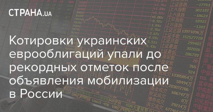 Котировки украинских еврооблигаций упали почти до рекордных отметок после заявления Владимира Путина о мобилизации в РФ и о "референдумах".