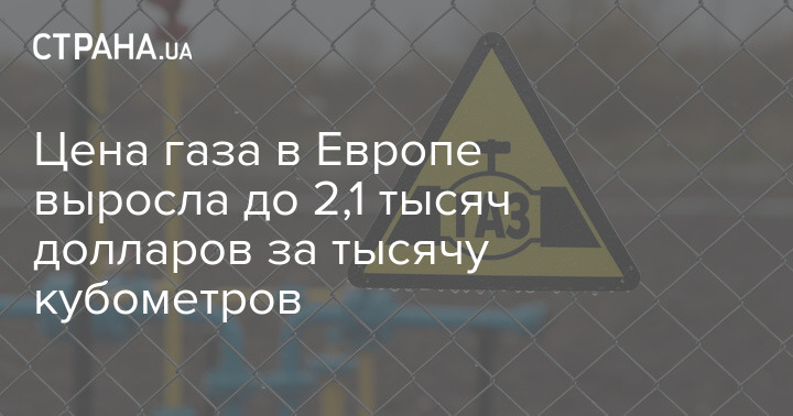 Стоимость газа в Европе выросла до 2,1 тысяч долларов за тысячу кубометров.