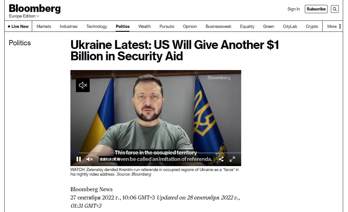 11.05 Сегодня администрация Байдена объявит о предоставлении Украине помощи в сфере безопасности еще на 1 миллиард долларов, пишет Bloomberg со ссылкой на два осведомленных источника.