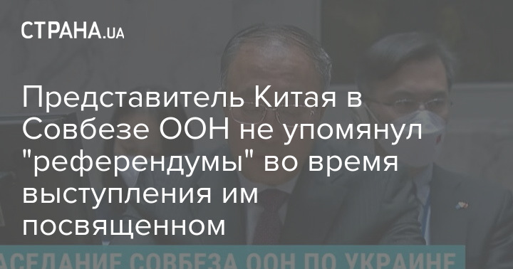 Представитель Китая в Совбезе ООН не упомянул слово "референдум" в своем выступлении на заседании, посвященном "референдумам" на захваченных РФ украинских территориях.