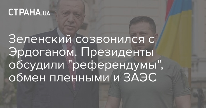 В среду, 28 сентября, президенты Турции и Украины обсудили по телефону "референдумы", проведенный обмен военнопленными и ситуацию вокруг Запорожской АЭС.