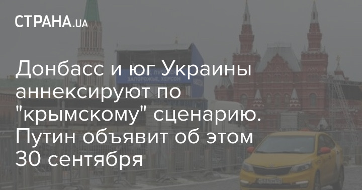 Судя по тому что Госдума и Совет Федерации анонсировали свои заседания по аннексии на 3 и 4 октября, процесс пойдет по "крымскому" сценарию, пишет телеграм-канал "Политика Страны"