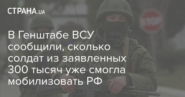 В Генштабе Вооруженных сил Украины заявляют, что Россия уже смогла мобилизовать 100 тысяч солдат из заявленного плана в 300 тысяч. При этом цифра в 300 тысяч не является конечной.